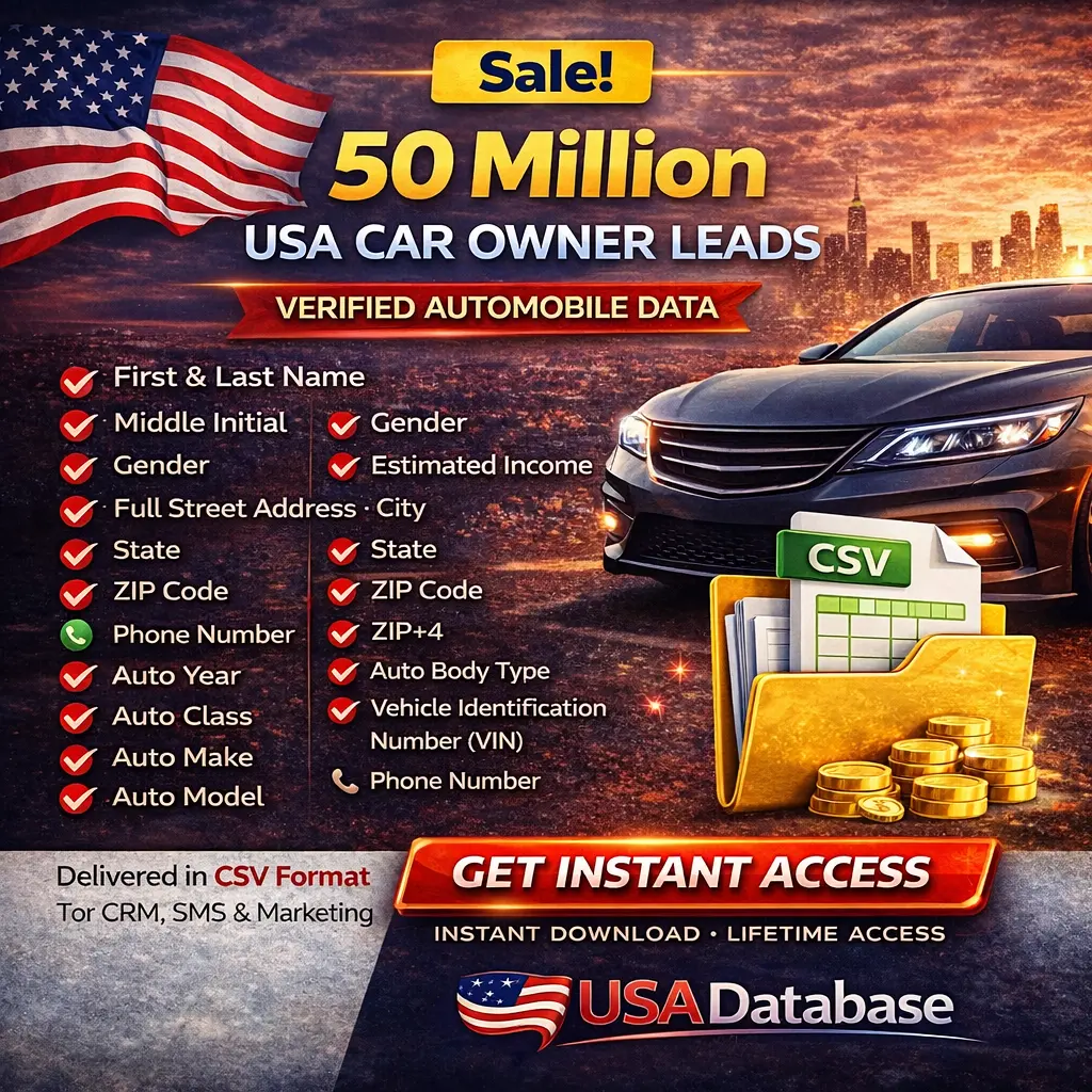 This product includes 50,000,000+ USA car owner leads with detailed contact, location, and vehicle information, built specifically for businesses that need large-scale, highly targeted automobile marketing data.